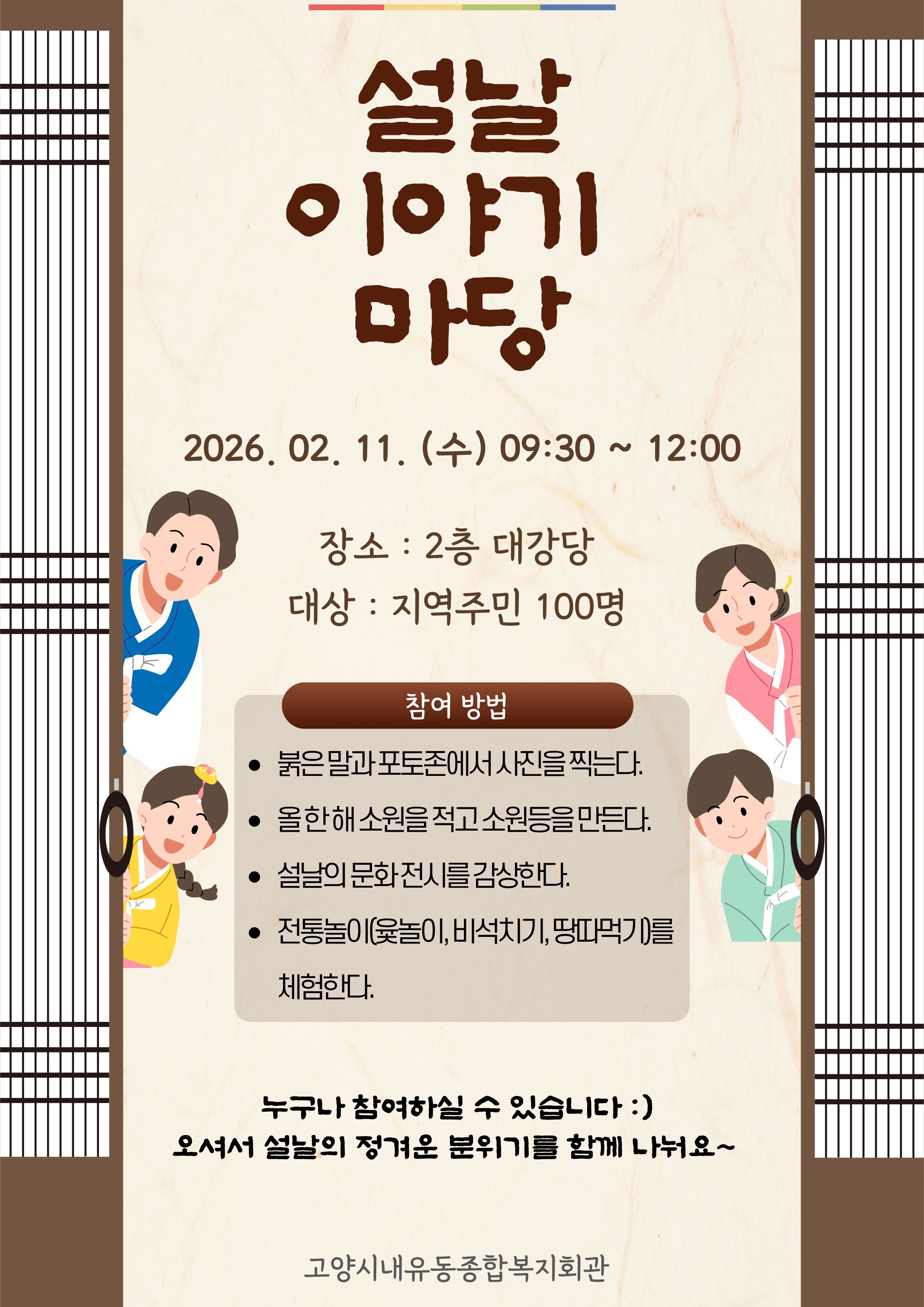 내유잔치 '설날 이야기 마당' 실시 안내
