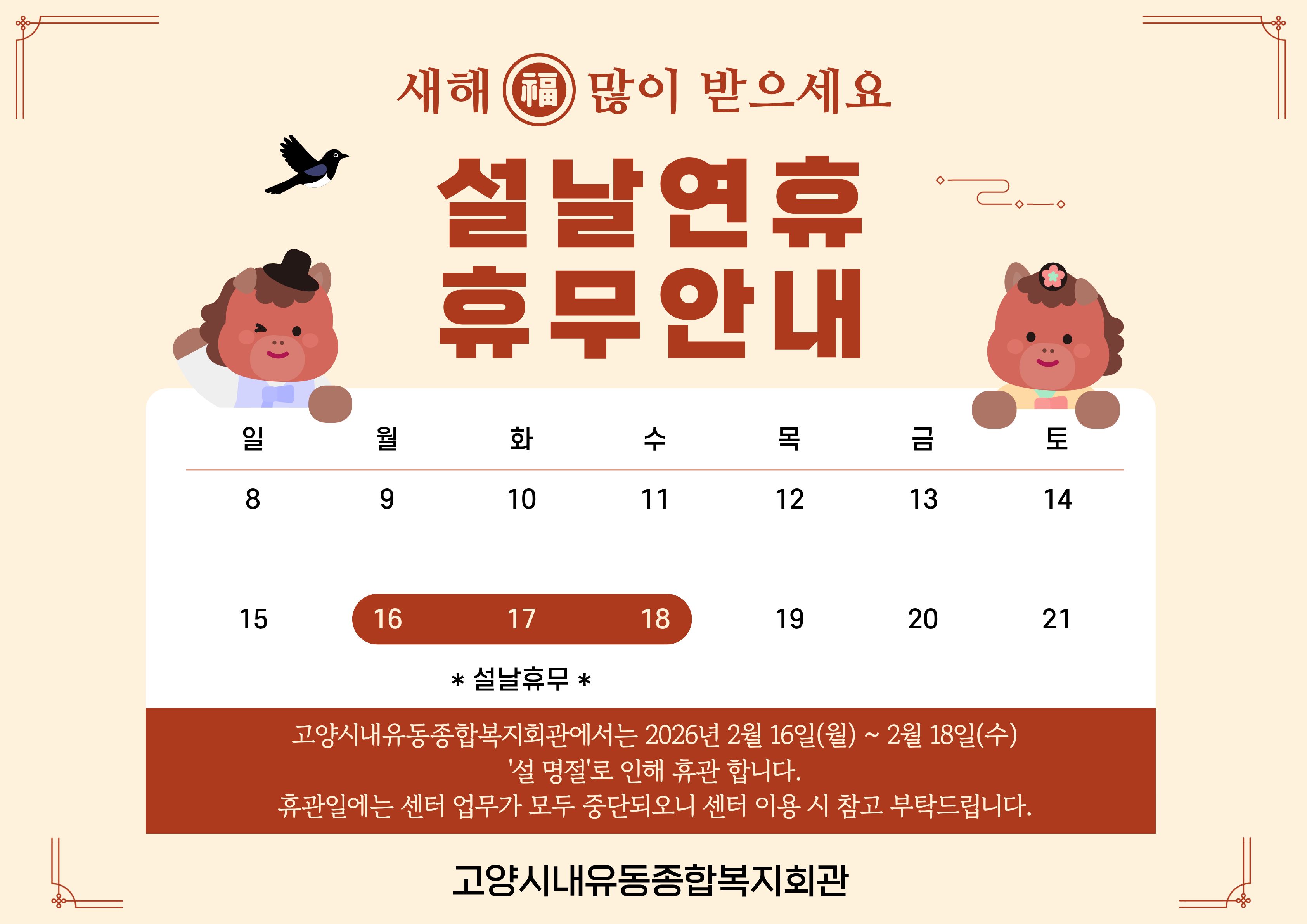 2026 설명절 휴관 안내